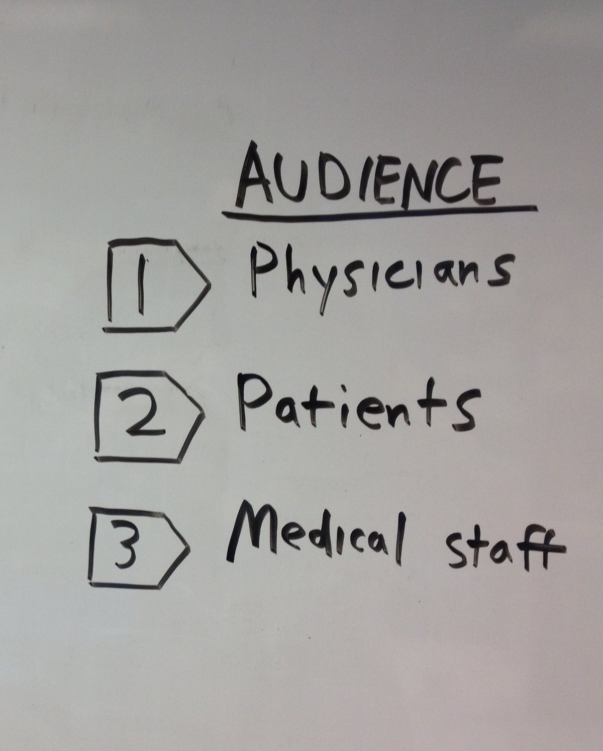 Next we asked Uday and Maarten to list their customers (pretty easy) and stack rank them (not so easy). Is the brand name most important for patients, doctors, or hospital staff? Since doctors make the device recommendation, they went on top.