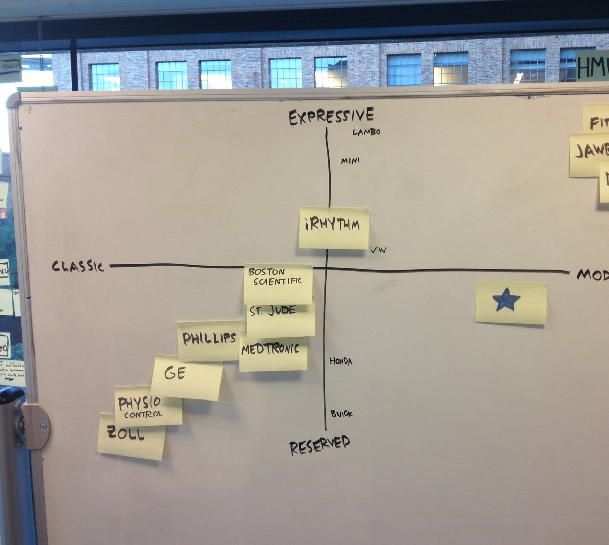 Next we did a classic brand exercise: plotting the company on a continuum between pairs of extremes.